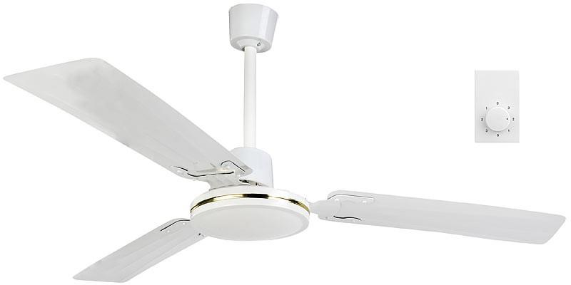 91 cm átmérőjű, 4 fehérre festett fém forgólapáttal. Mennyezeti ventilátor Ventilátor teljesítménye: 70W